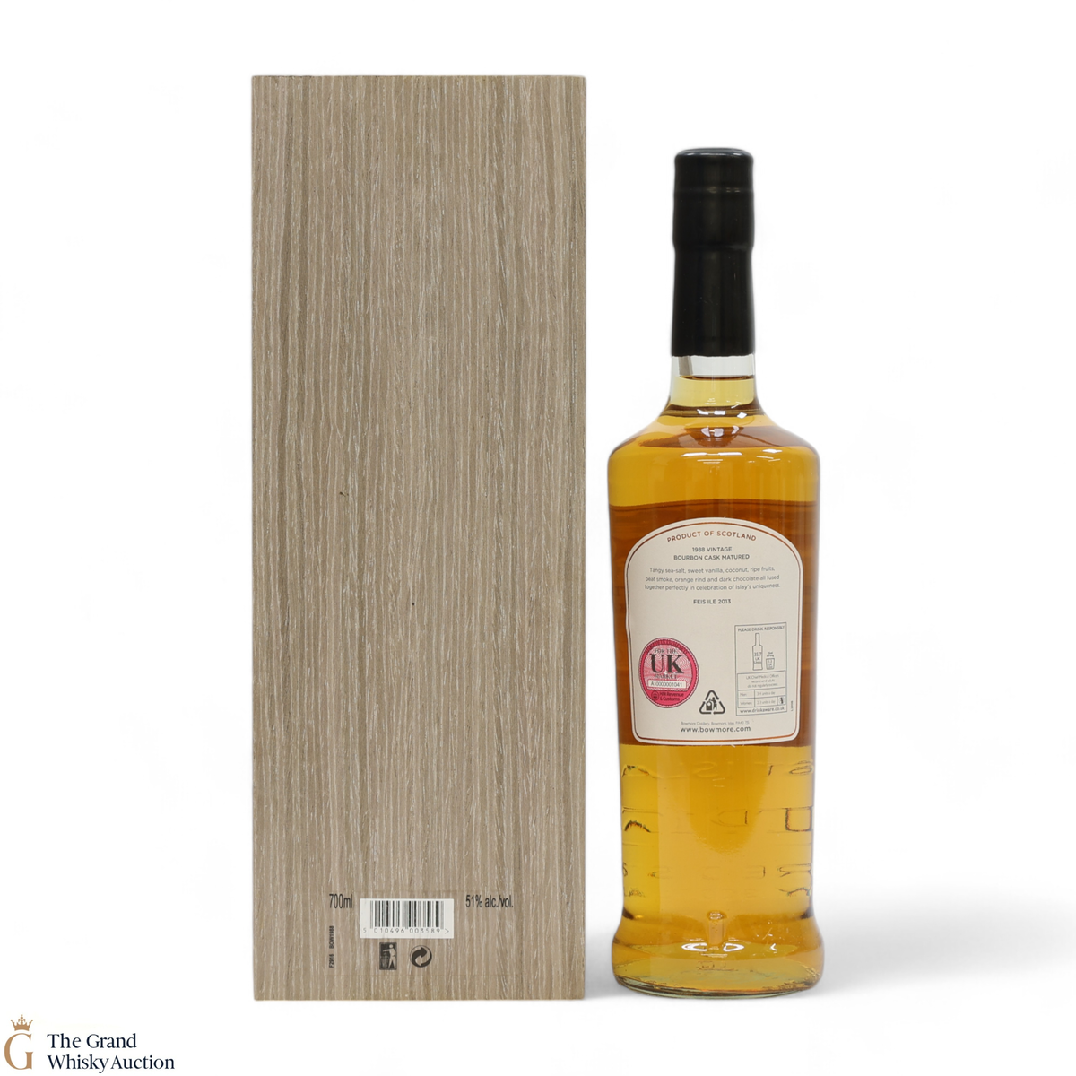 A limited edition of just 300 bottles from Bowmore, distilled in 1988, matured in bourbon and bottled in 2013 for Feis Ile 2013. It comes in a stunning wooden presentation box, this is a rare and collectable bottling.