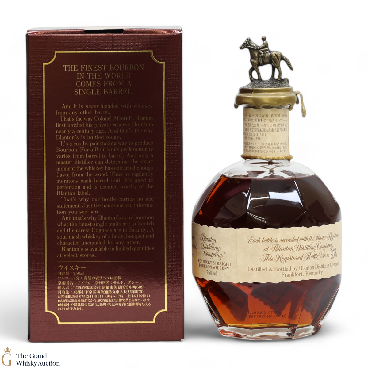 PLEASE NOTE: The wax seal on Blanton's bottles are prone to cracking in transit due to their design. Therefore, as stated in our T&C’s, we do not and will not accept liability should the seal be breached, broken, split or leak in transit. Additionally, please know due to the design of the internal cardboard packaging that surrounds the top of the bottles, it too may be torn. By bidding on this lot you have understood this to be true. Insurance is for complete breakage or loss in transit only.