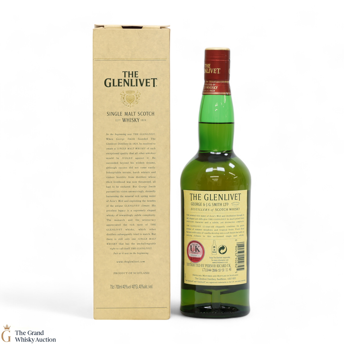 Due to the various ages of bottles and their seals, the condition of liquid is at the buyer's discretion and no claim can be lodged against failure/leakage in transit. Loss and breakage cover is available at 3% of the hammer price as standard. If the lot is not insured, no claim can be lodged against the courier or The Grand Whisky Auction for breakage or loss in transit.