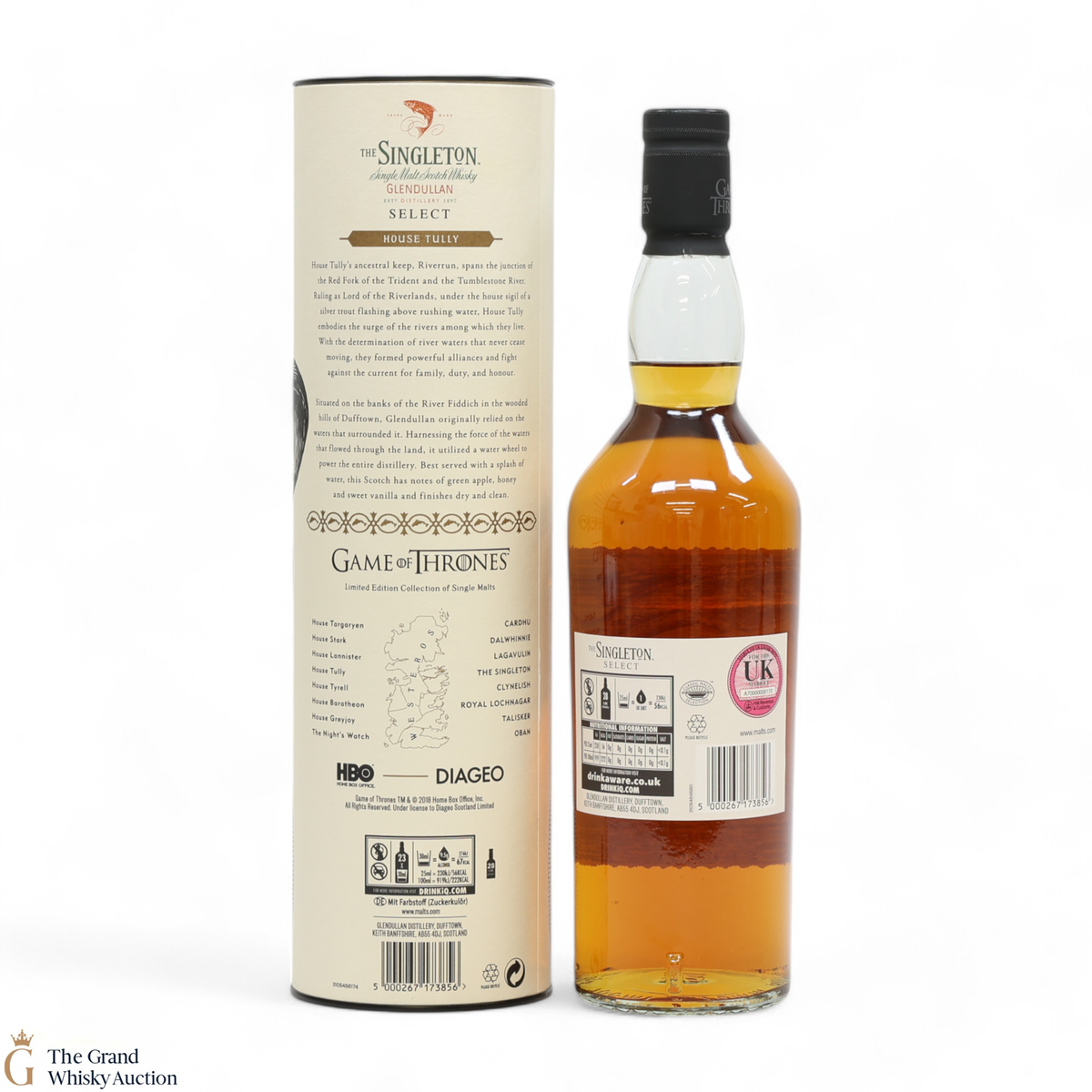 The Singleton Glendullan Reserve hails from Dufftown distillery. Glendullan is located on the banks of the River Fiddich, so it has been cleverly paired with House Tully at Riverrun, which is in the region known as The Riverlands. This single malt Scotch whisky is decorated with a jumping trout - the sigil of House Tully.