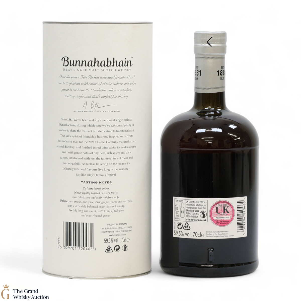 Bunnahabhain's first release for Feis Ile 2021 is this limited-edition smoky whisky. Distilled on the 10th of October 2013, this single malt was finished in Moine Bordeaux casks which gives the Bunnahabhain a delicately balanced flavour. Bottled on the 25th of November 2020, this is one of only 5166 bottles produced.