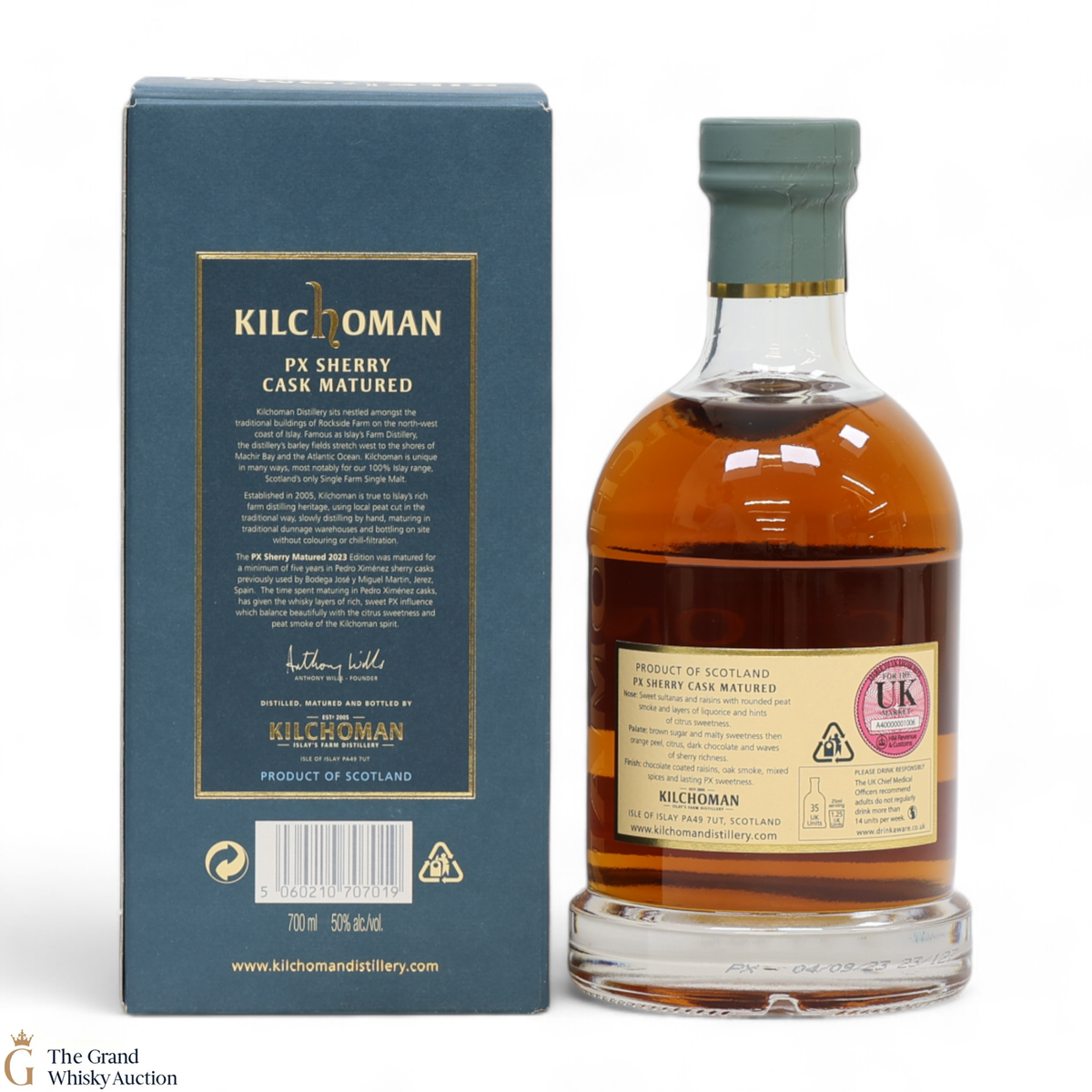 Distilled at the popular Kilchoman Distillery in Islay, this single malt was matured for a minimum of five years in Pedro Ximenez sherry casks previously used by Bodega Jose y Miguel Martin, Jerez, Spain.