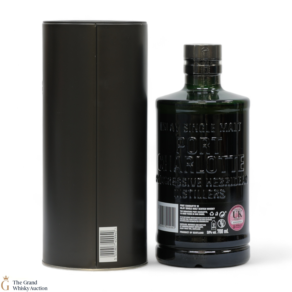 The Port Charlotte 10-Year-Old whisky is produced in tall, narrow-necked spirit stills. This creates a lot of reflux and maximizes the amount of copper contact that the vapour receives. The result is a smooth, silky whisky, with noticeable floral elements. Following distillation, the new-make spirit is matured in a combination of first-fill ex-bourbon casks (65%), second-fill bourbon casks (10%) and second-fill French wine casks from Bordeaux (25%). The whisky is bottled on-site. Neither chill filtering nor caramel is used.