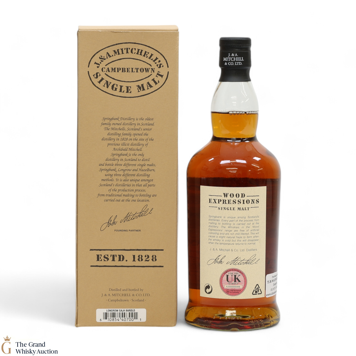 A 7-year-old Longrow, a more heavily peated single malt distilled at Springbank, distillery in 2000. It spent 5 & 1/2 years in refill bourbon casks before a finishing 18 months in ex Gaja Barolo casks. Bottled in January 2008. One of an outurn of 12120 bottles at 55.8% ABV.