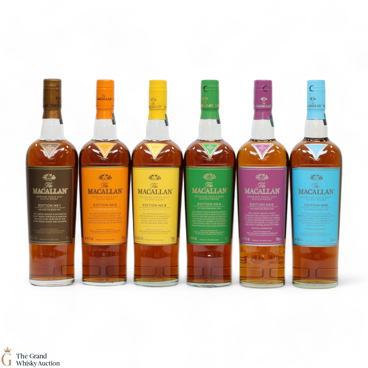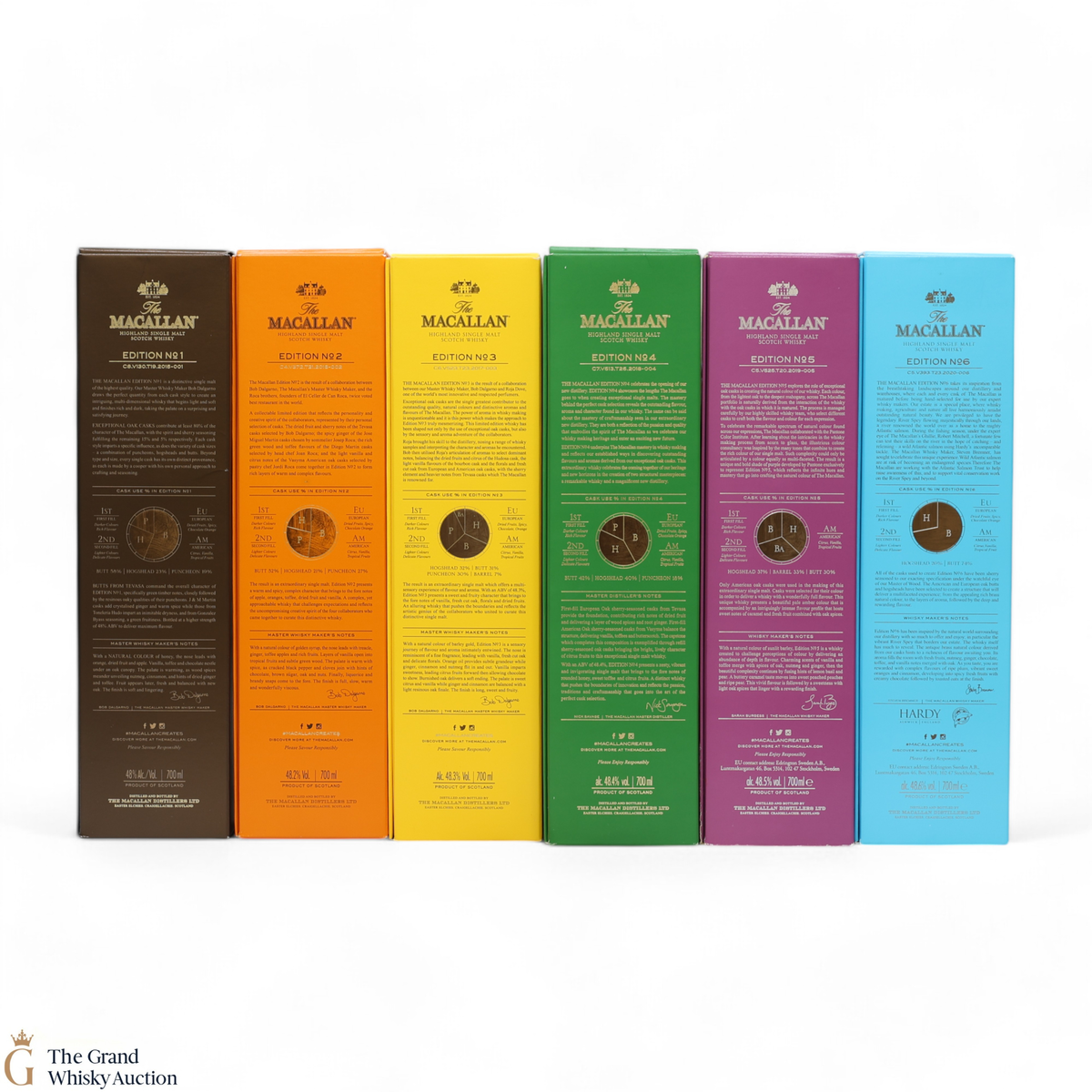This lot brings together the Macallan Edition set, comprising Edition No.1-6 in the annual limited edition series 2015-2020.