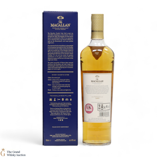 Macallan Gold was first introduced in 2012 as part of the distillery's 1824 range of non-age statement expressions, before being renamed Macallan Gold Double Cask in 2018 as part of the new core range. Matured in a combination of first fill and refill American oak and European oak sherry casks to create an incredibly smooth and rich single malt. Soft gold in colour, this is the lightest expression of the Macallan range, but still packed with typical Speyside Macallan flavours.