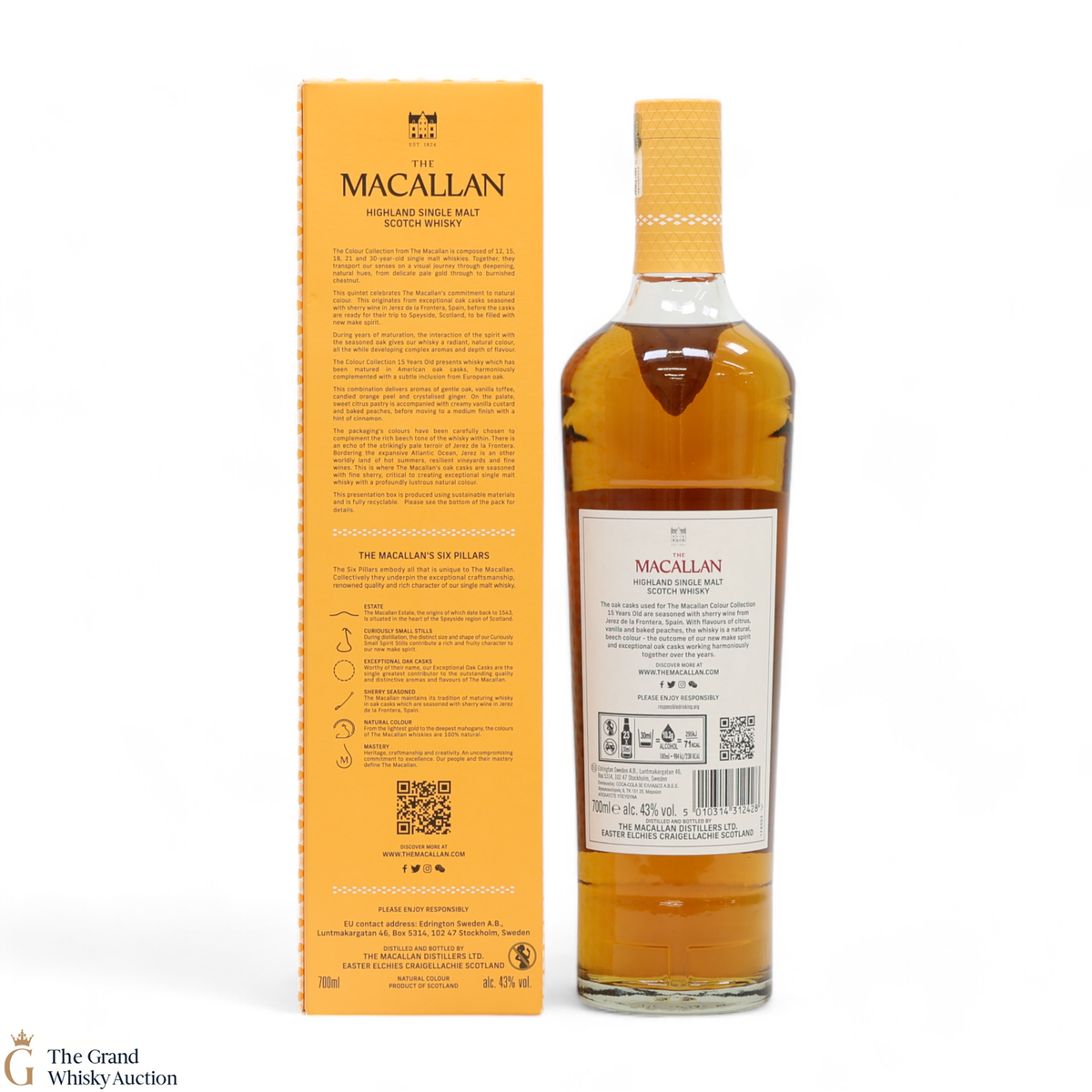 The return of the age statement honours these distinctive global travel exclusive releases. The Colour Collection is a range of exceptional whiskies, celebrating two pillars on which The Macallan legacy is built: Natural Colour and Sherry Seasoning. It is composed of 12, 15, 18, 21 and 30-year-old expressions.