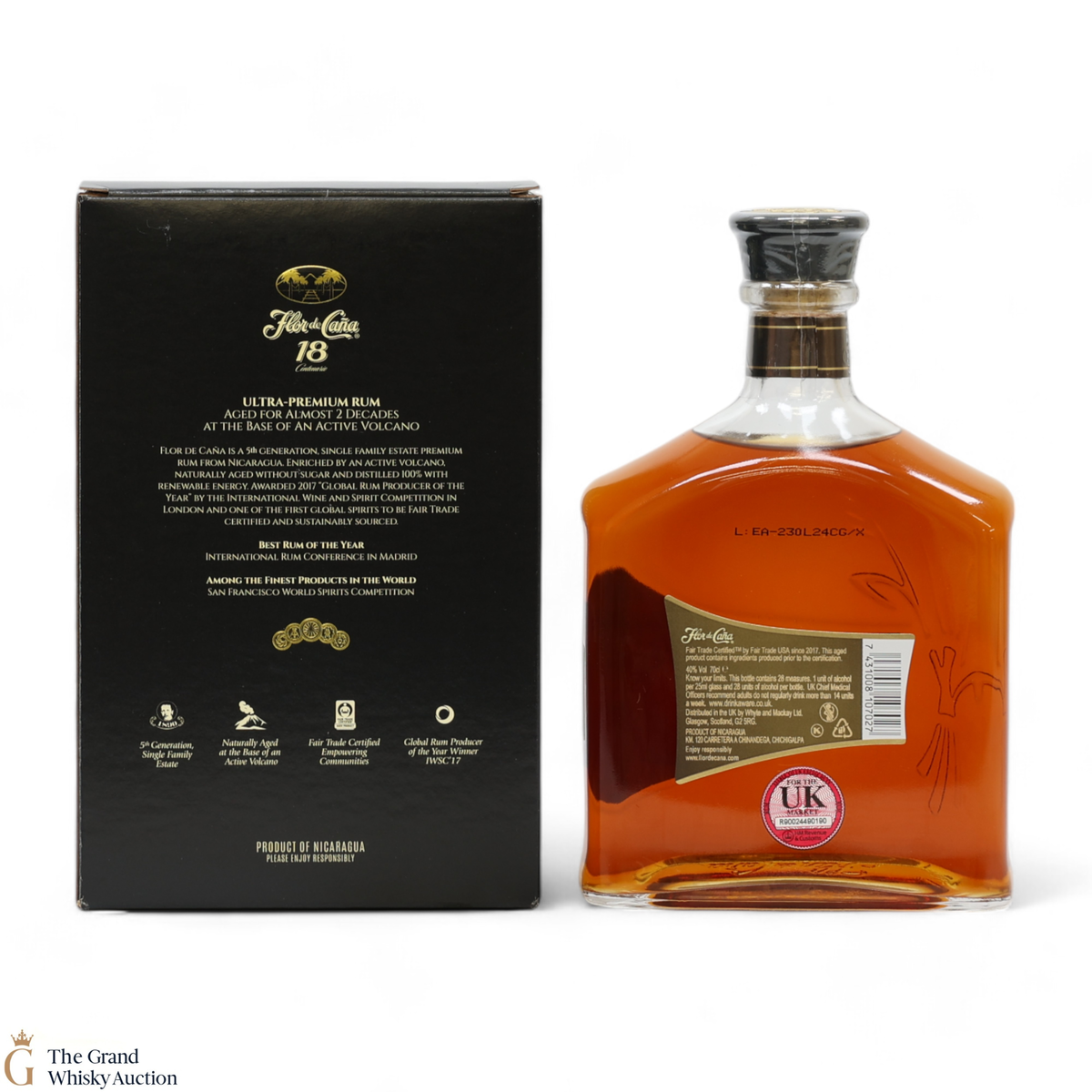 Flor de Caña 18 Year Old Rum is a distinguished Nicaraguan rum renowned for its exceptional smoothness and rich character, created from selected sugarcane and matured for four years. This rum offers a refined experience that is symbolic of the longstanding tradition and adeptness of its creators.