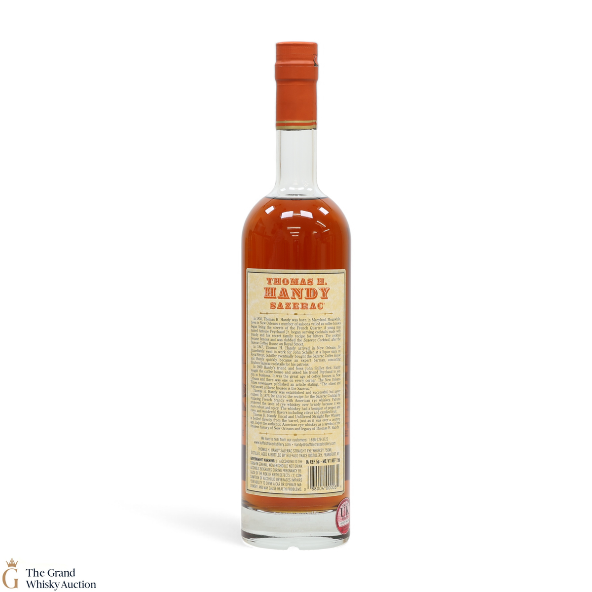 Due to the various ages of bottles and their seals, the condition of liquid is at the buyer's discretion and no claim can be lodged against failure/leakage in transit. Loss and breakage cover is available at 3% of the hammer price as standard. If the lot is not insured, no claim can be lodged against the courier or The Grand Whisky Auction for breakage or loss in transit.