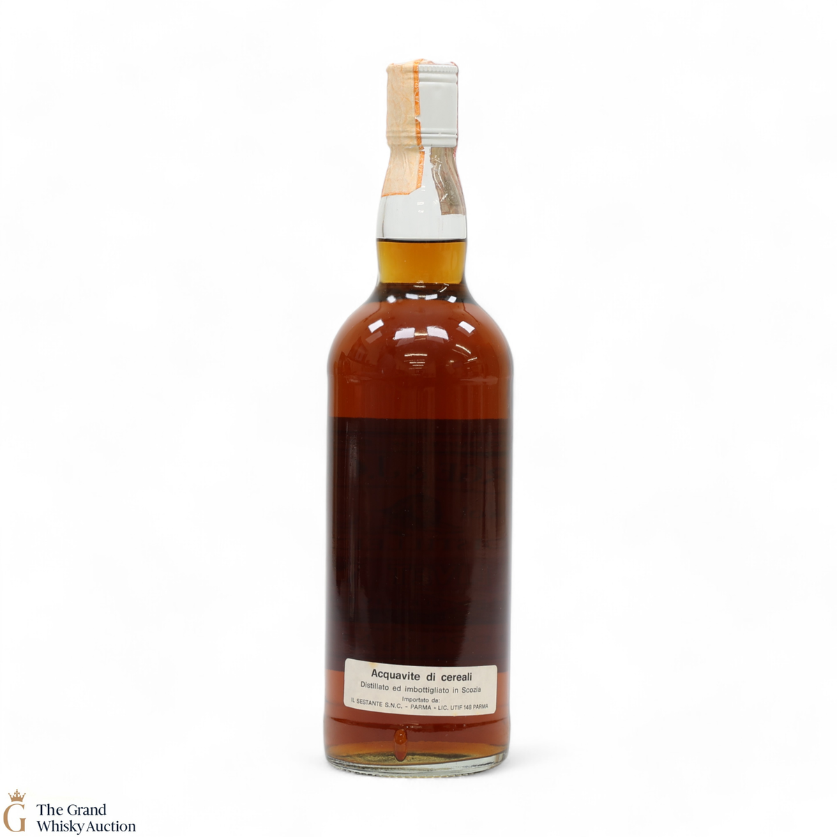 Due to the various ages of bottles and their seals, the condition of liquid is at the buyer's discretion and no claim can be lodged against failure/leakage in transit. Loss and breakage cover is available at 3% of the hammer price as standard. If the lot is not insured, no claim can be lodged against the courier or The Grand Whisky Auction for breakage or loss in transit.