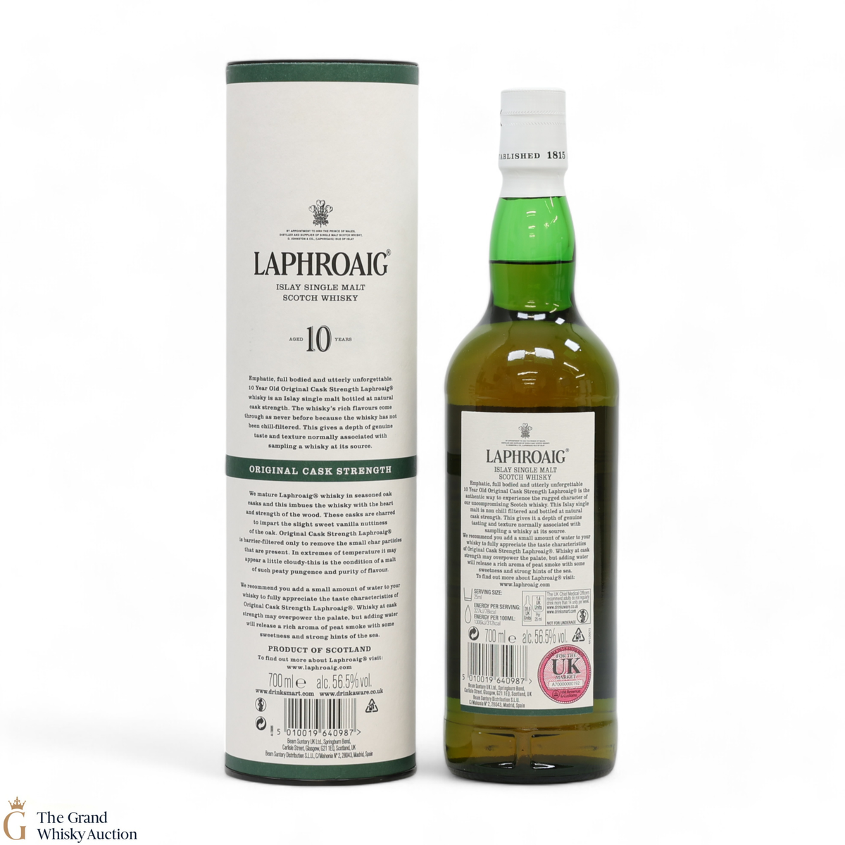 This bottling is from batch 015, the original cask strength bottling of the medicinal 10-year-old from Islay's bestselling distillery, Laphroaig. In making Laphroaig, malted barley is dried over a peat fire. The smoke from this peat, found only on Islay, gives Laphroaig its particularly rich flavour. This release was bottled in December 2021 at 56.5% ABV.