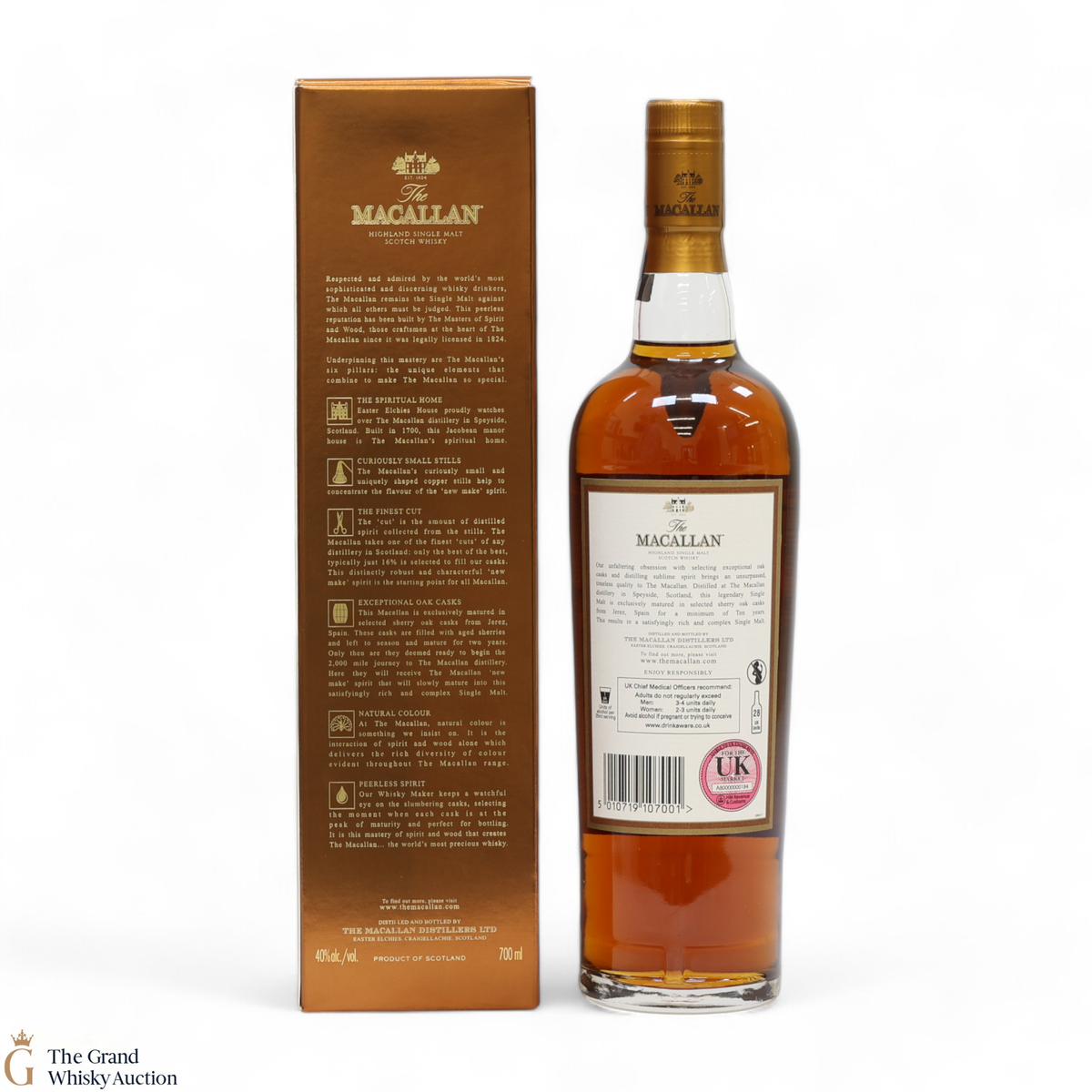 Distilled at the world-renowned Macallan Distillery in Speyside, this single malt was matured exclusively in sherry oak casks from Jerez, Spain. It was aged for a total of 10 years prior to bottling at a strength of 40% ABV.