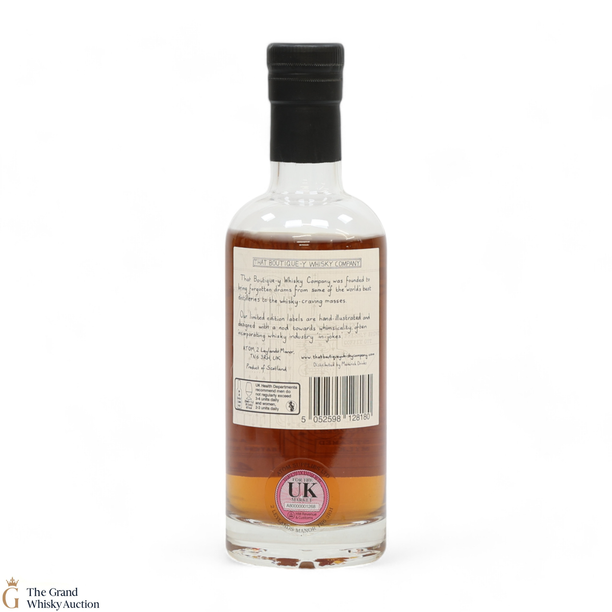 Due to the various ages of bottles and their seals, the condition of liquid is at the buyer's discretion and no claim can be lodged against failure/leakage in transit. Loss and breakage cover is available at 3% of the hammer price as standard. If the lot is not insured, no claim can be lodged against the courier or The Grand Whisky Auction for breakage or loss in transit.