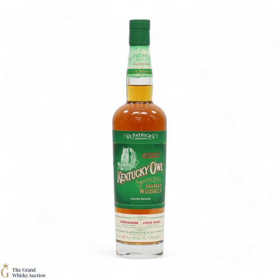 Kentucky Owl St. Patrick’s Limited Edition Bourbon Whiskey is a “celebration of the ties that connect Irish and Kentucky whiskey-making". It was collaboratively blended by John Rhea and Loluise McGuane resulting in a blend of Kentucky straight bourbons aged 4 to 11 years, bottled at 50% ABV (100 proof).