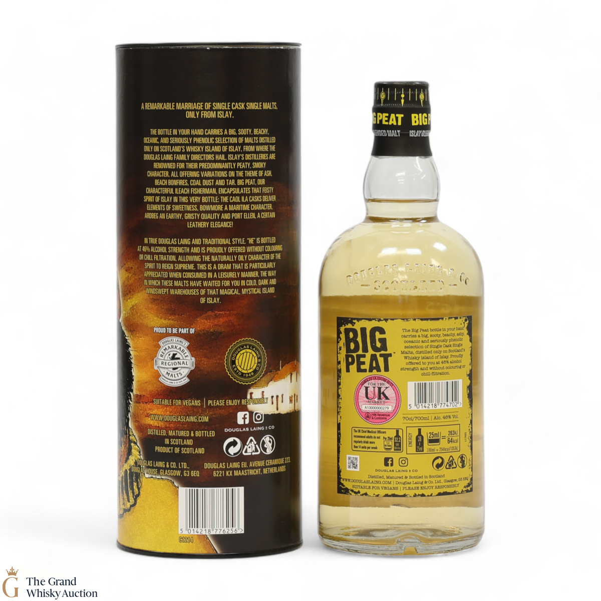 Islay's Distilleries are renowned for their predominantly peaty, smoky character, all offering variations on the theme of ash, beach bonfires, coal dust and tar. Big Peat, our characterful Ileach Fisherman, encapsulates that feisty spirit of Islay in this very bottle: The Caol Ila casks deliver elements of sweetness, Bowmore a maritime character, Ardbeg an earthy gristy quality and Port Ellen, a certain leathery elegance.