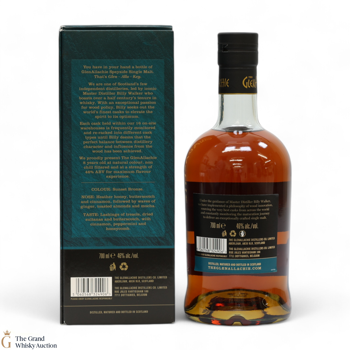 Released as part of their core range, The GlenAllachie 8-year-old was created from a combination of Pedro Ximénez and Oloroso sherry puncheons along with a small quantity of Virgin Oak casks and red wine barriques. The resulting bronze spirit delivers sherry-matured sophistication.