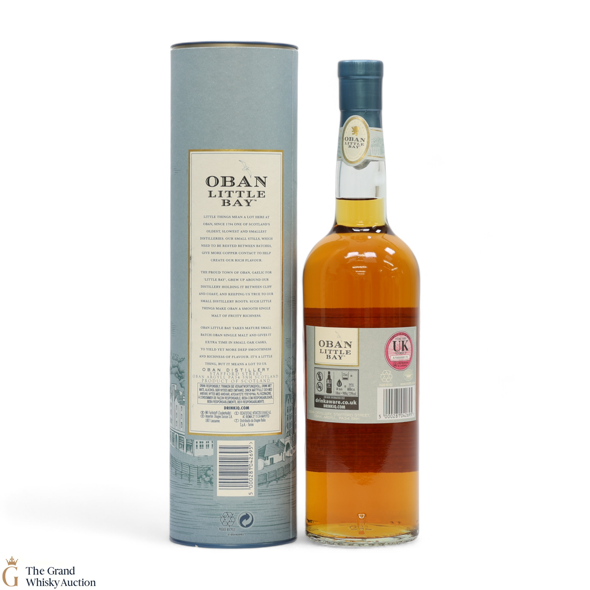 Oban Little Bay then matured in refill American oak hogsheads, European oak Sherry casks and refill casks with new ends before being married in the smallest casks available at the distillery, 200-litre ex-bourbon barrels.