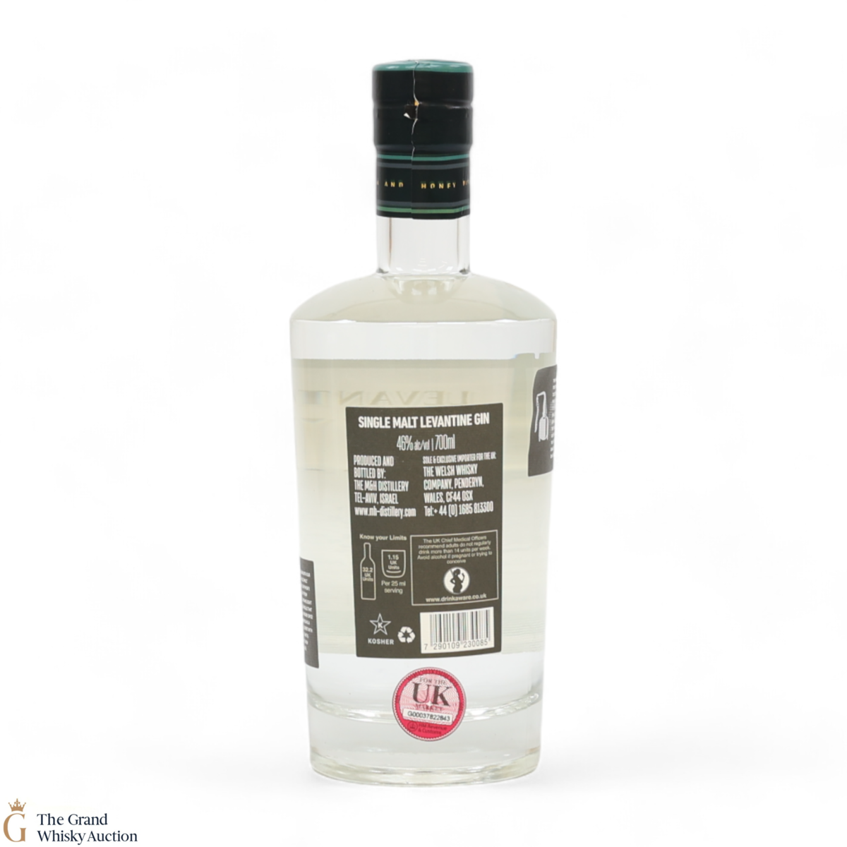 Levantine Gin produced in Tel Aviv, Israel, features a blend of traditional gin botanicals, like juniper coriander and cirtus fruits.