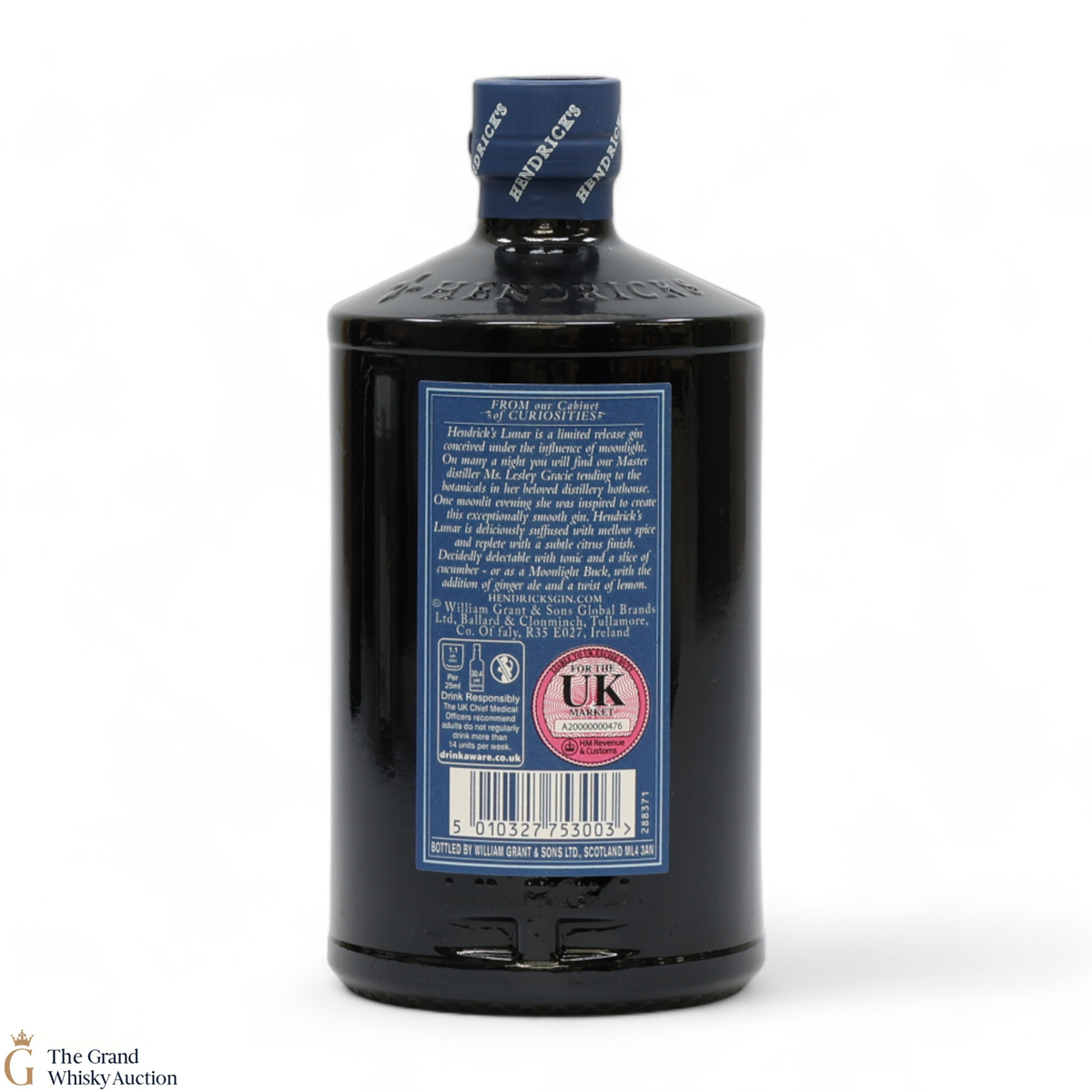 Hendrick's Lunar Gin is crafted by Hendrick's Distillery, situated in Girvan, Scotland. This limited edition variation of the classic gin undergoes production in small, artfully curated batches. Noteworthy for its unique infusion of floral and botanical notes, the beverage boasts the essence of lavender, chamomile, and moonlight, offering a truly distinctive flavour profile.