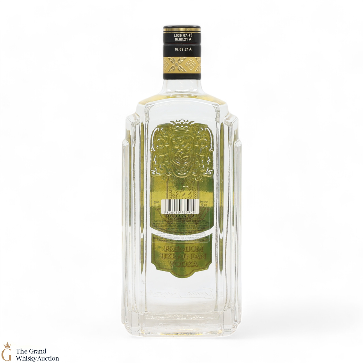 This vodka has been produced from 100% Ukranian grain spirit, a ПОВАЖНА (respectful) original recipe using carbon filtration.