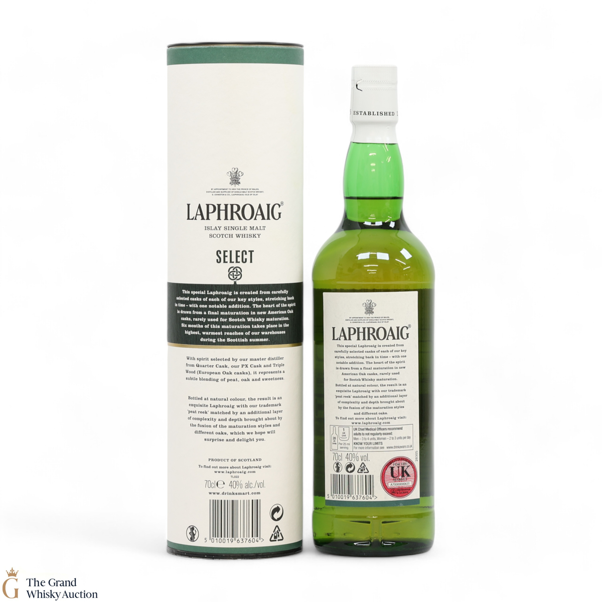 Laphroaig Select has been created using a combination of whisky from a number of different types of casks, including Oloroso Sherry butts, white American oak, Pedro Ximenez seasoned hogsheads, quarter casks and first-fill bourbon casks.