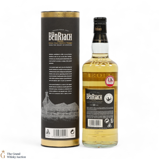This is an older style bottling of Speyside 10-year-old from Benriach made with ith malted barley dried with peat-induced kilns.