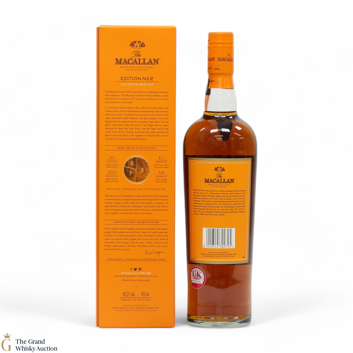 This is the second release from the Macallan Edition series. Edition No.2 is a collaboration between Macallan's master blender Bob Delgarno and legendary Spanish chefs Joan, Josep and Jordi Roca. The Rocas are the three brothers behind El Celler de Can Roca (named Best Restaurant in the World twice by Restaurant magazine). This single malt was drawn from a combination of sherry puncheons, butts and refill hogsheads.