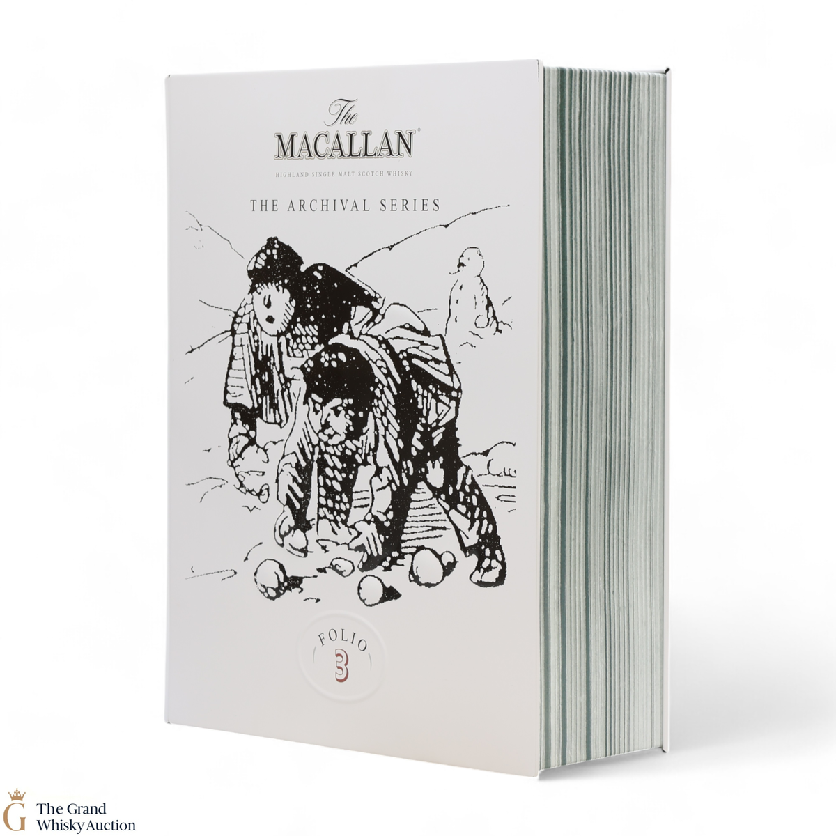 The theme of the Folio 3 is Macallan's advertising campaigns from the 1980s and 1990s. The presentation includes a book containing the best of these. The illustration on the box is from an advert used in a Victorian-era edition of Punch Magazine. It is intended to capture the sentiment that whisky is best produced in cold weather - a remark that Macallan claim was made on their very own estate at Easter Elchies.