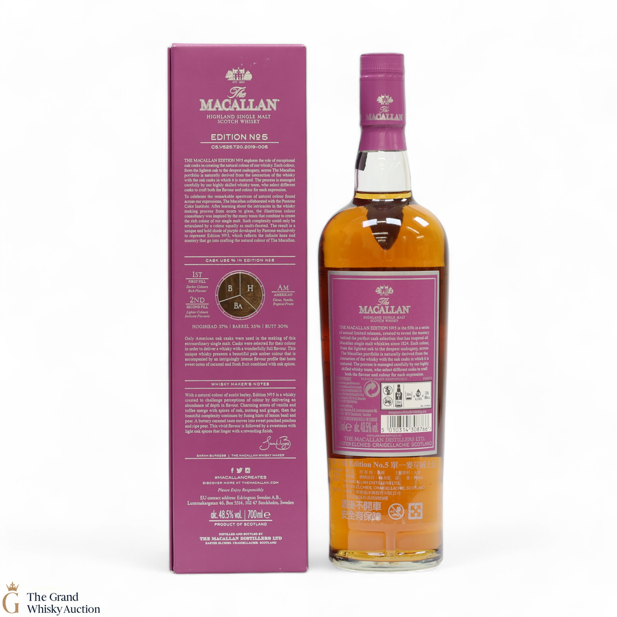 The fifth release in the Edition Series from The Macallan, The Macallan Edition No. 5 celebrates The Macallan’s extensive natural colour spectrum and the intricate whisky-making process, in partnership with masters at the Pantone Color Institute™ to create a unique shade of purple that features on the packaging.