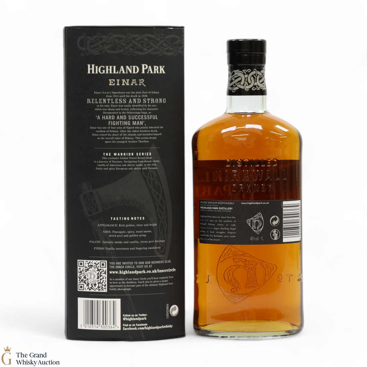 Einar is from Highland Park's travel retail Warrior series. It is named after Einar Sigurdsson who is documented in the Orkneyinga Saga as 'hard and successful man' that once ruled Orkney, where the Highland Park distillery resides. This single malt has been matured in Sherry seasoned American and European oak casks. Warm flavours of zesty dried orange peel and vanilla pods sweetly unfold in each dram of Einar.