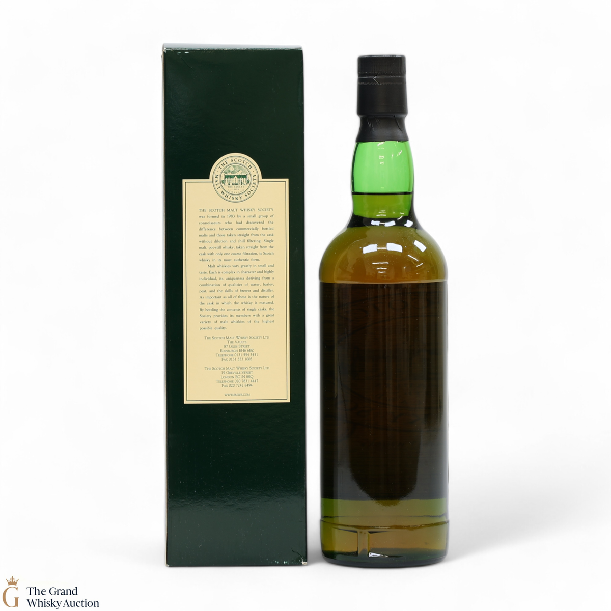 Due to the various ages of bottles and their seals, the condition of liquid is at the buyer's discretion and no claim can be lodged against failure/leakage in transit. Loss and breakage cover is available at 3% of the hammer price as standard. If the lot is not insured, no claim can be lodged against the courier or The Grand Whisky Auction for breakage or loss in transit.