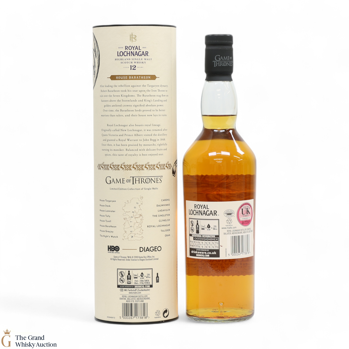 This is a limited-edition 12 year old single malt from Royal Lochnagar and it is part of Diagio's 2018 collaboration with HBO. Each single malt in the series relates to the land of houses of the Game of Thrones television series. The Royal Lochnagar bottle is decorated with a rampant black Stag, the sigil of House Baratheon that once flew on banners above the Stormlands and King’s Landing signifying absolute power.