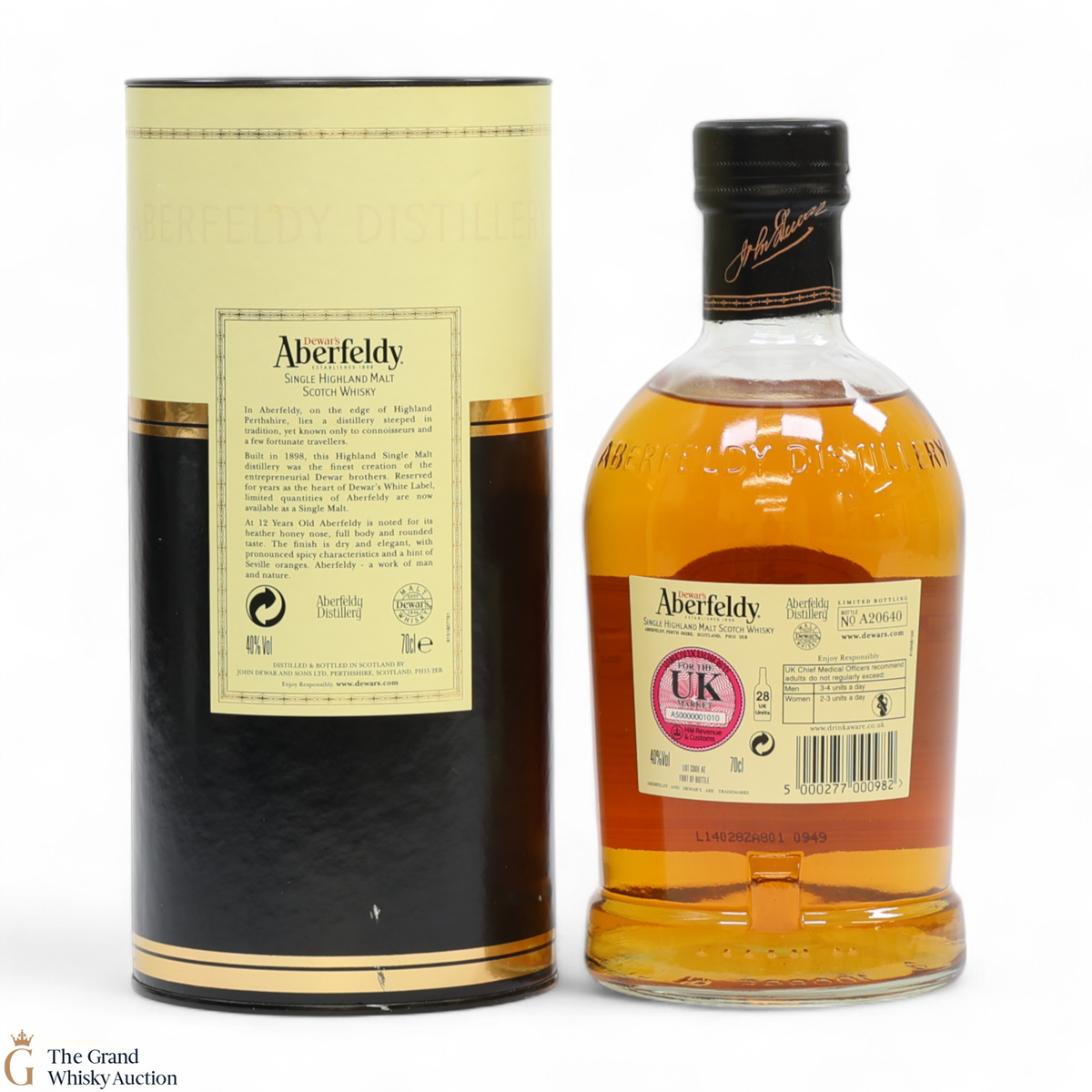 Due to the various ages of bottles and their seals, the condition of liquid is at the buyer's discretion and no claim can be lodged against failure/leakage in transit. Loss and breakage cover is available at 3% of the hammer price as standard. If the lot is not insured, no claim can be lodged against the courier or The Grand Whisky Auction for breakage or loss in transit.