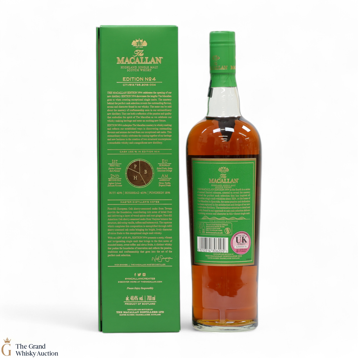 The fourth release in the Edition Series from The Macallan, this Speyside single malt is a celebration of the distillery's whisky making heritage, combining a unique selection of oak cask styles. Edition No.4 reflects the craftsmanship and pioneering design of the new Macallan distillery.