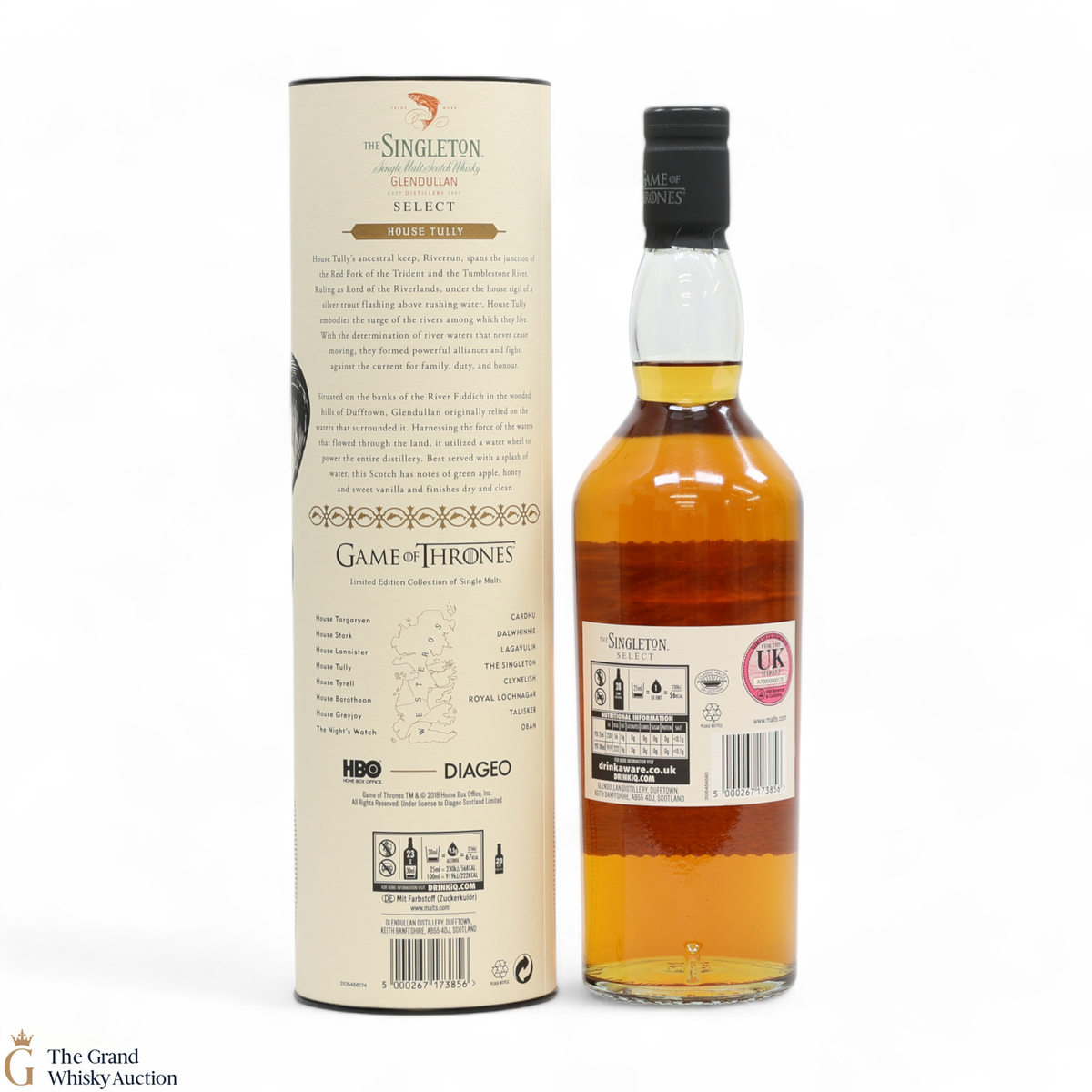 The Singleton Glendullan Reserve hails from Dufftown distillery. Glendullan is located on the banks of the River Fiddich, so it has been cleverly paired with House Tully at Riverrun, which is in the region known as The Riverlands. This single malt Scotch whisky is decorated with a jumping trout - the sigil of House Tully.