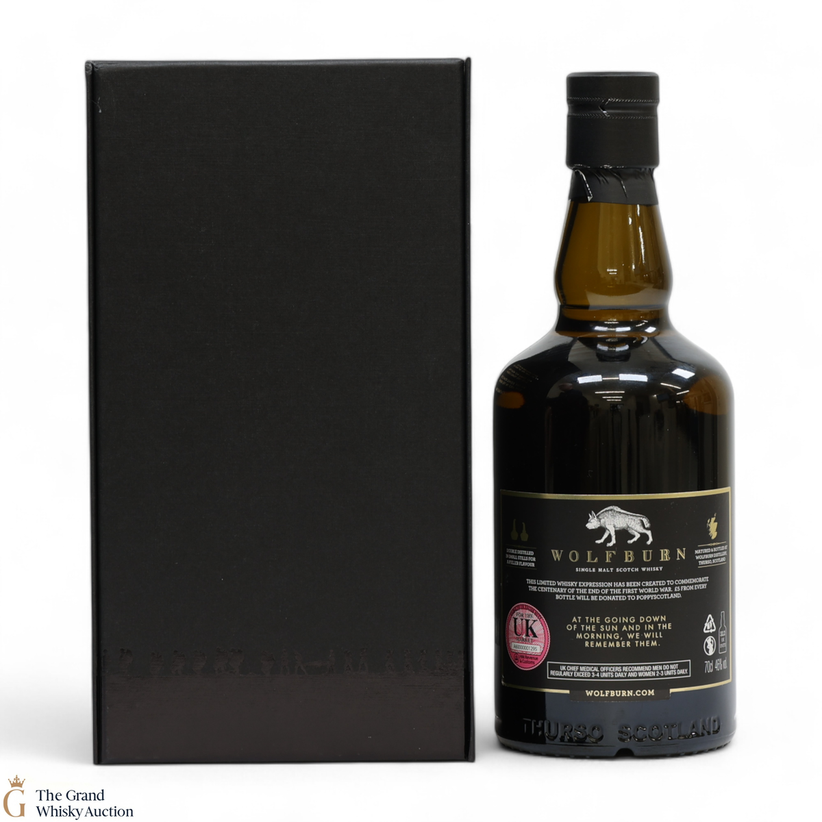A limited edition from Wolfburn Distillery to commemorate the 100th anniversary of the end of The First World War. A total of 1918 bottles were produced and sold exclusively from the distillery and through the Carnegie Whisky Cellars in Dornoch. This project is important to both companies and was proposed to Wolfburn Distillery due to the owners of Wolfburn being former British Servicemen and the importance of the Poppy Appeal to all service personnel and their families.