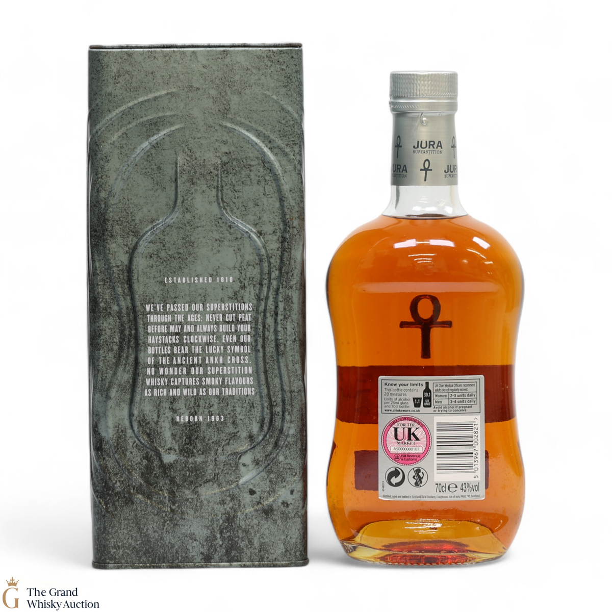 A lightly peated single malt made up of different ages. It is named after the fact that Islanders were very superstitious in the past, this is a nod to them, and to the Island of Jura which is still dotted with ancient stones and markings. When you raise a glass of this whisky, you're raising a glass to the ancient ways of the Island.