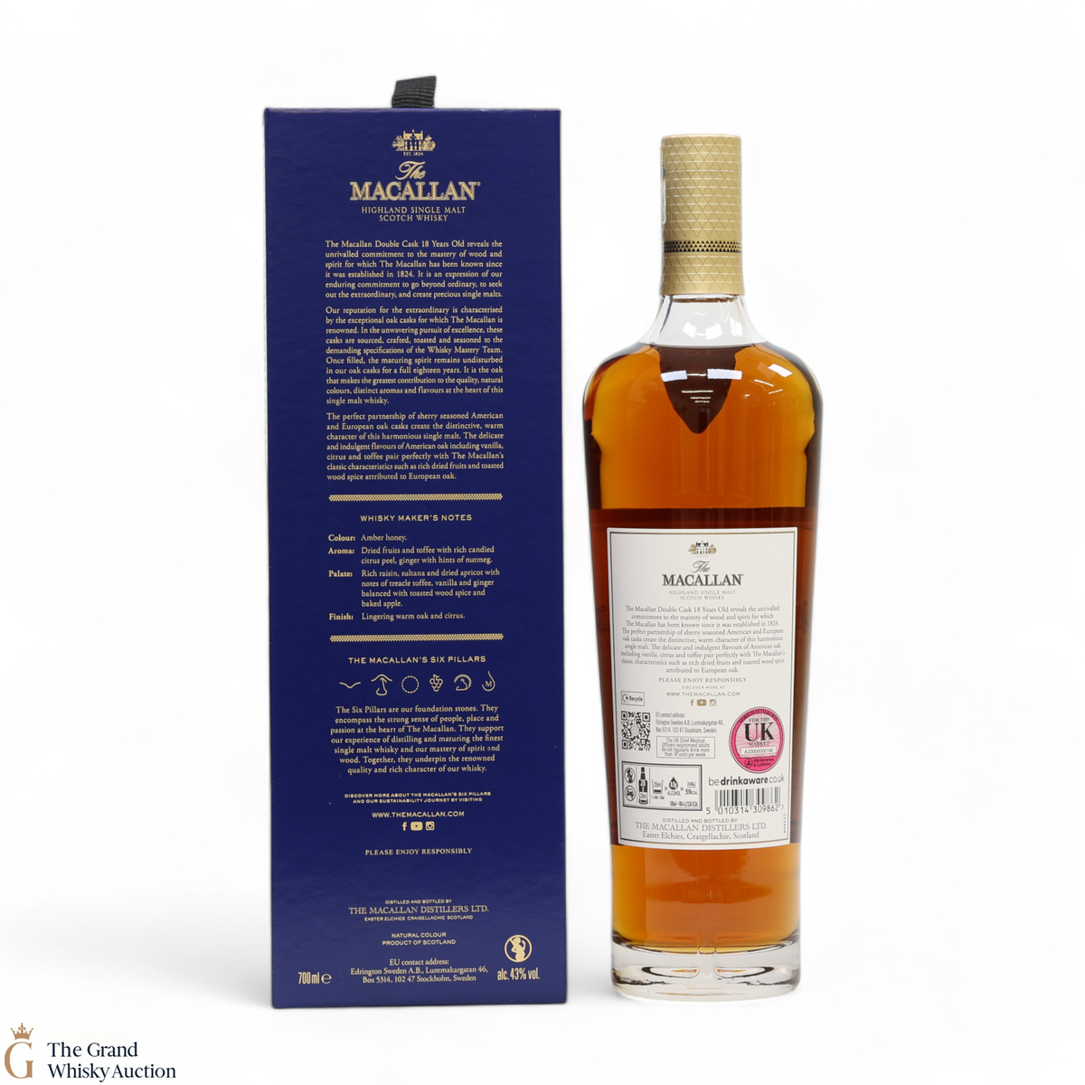 This 18 Year Old Macallan was matured in a combination of American and European Sherry oak for a minimum of 18 years. It is part of the Macallan Double Cask range, which marries the classic Macallan style and the sweetness of American oak.