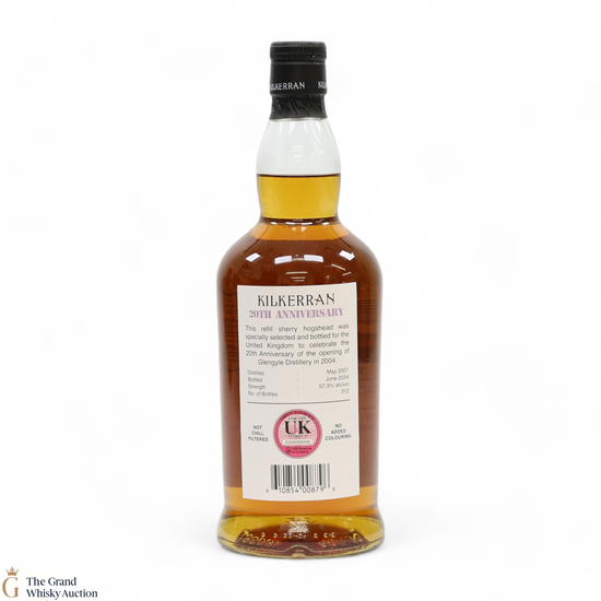 This refill sherry hogshead was specially selected and bottled for the United Kingdom to celebrate the 20th Anniversary of the opening of Glengyle Distillery in 2004.