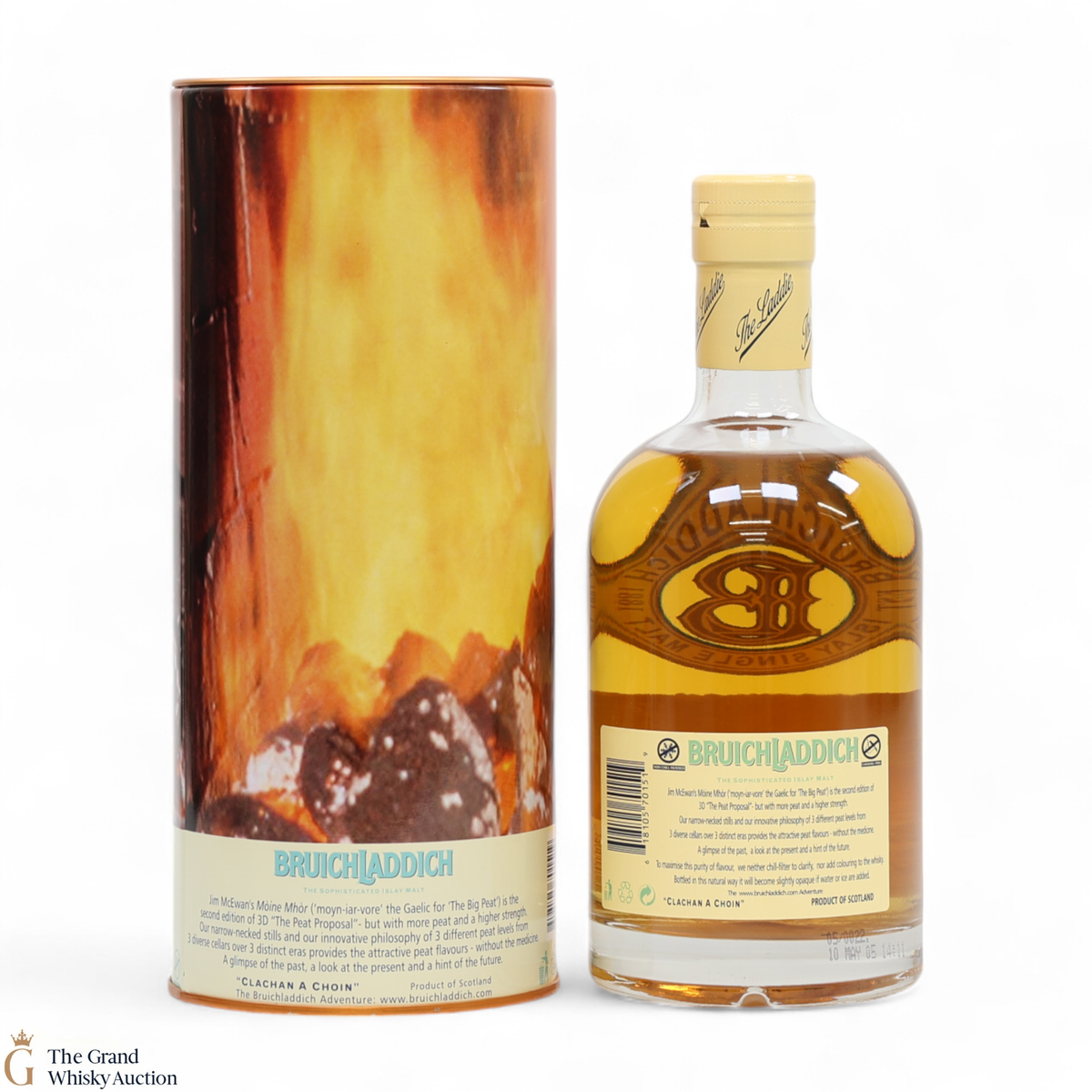 Moine Mhor is Gaelic for 'big peat' - This is a vatting of 3 different peat levels from 3 diverse cellars over 3 distinct eras, thus the name '3D': Heavily peated 2001 Port Charlotte, moderately peated 1998 whisky and 1989 lightly peated Bruichladdich. This bottling is the second edition of 3D "The Peat Proposal" but with more peat and higher strength.