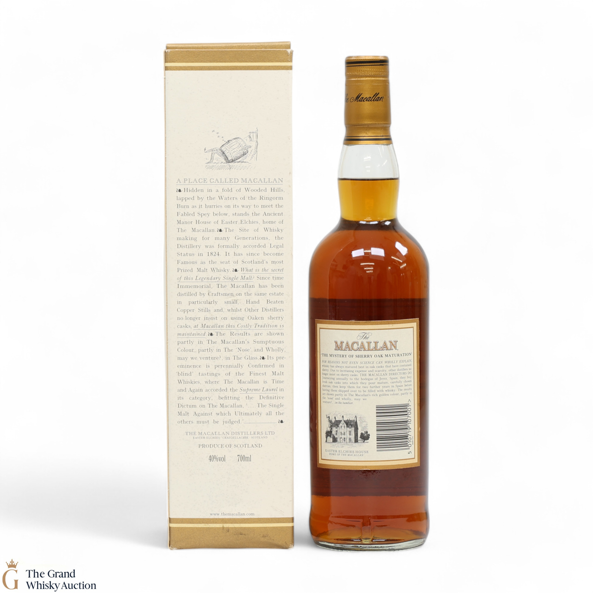 An old bottling of Macallan 10-year-old, which has been exclusively matured in sherry oak casks. Bottled in the early 2000s.