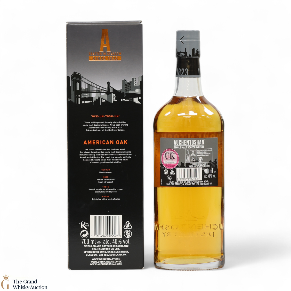 This triple distilled single malt scotch whisky from the Auchentoshan Distillery comes from a first fill North American oak casks. This bottling has a vanilla and coconut sweetness from a first fill bourbon casks.
