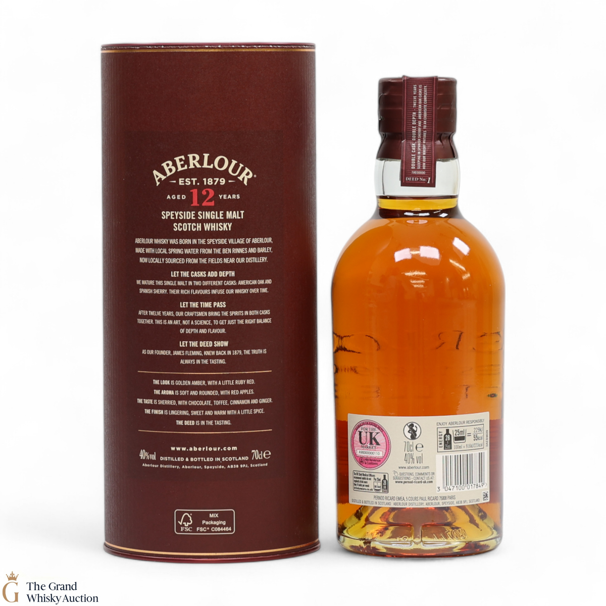 This Aberlour 12 Year Old, has been double cask matured in two handmade oak cask types. The double maturation of both traditional oak and sherry casks adds depth of character to this single malt, now bottled at 40% abv.