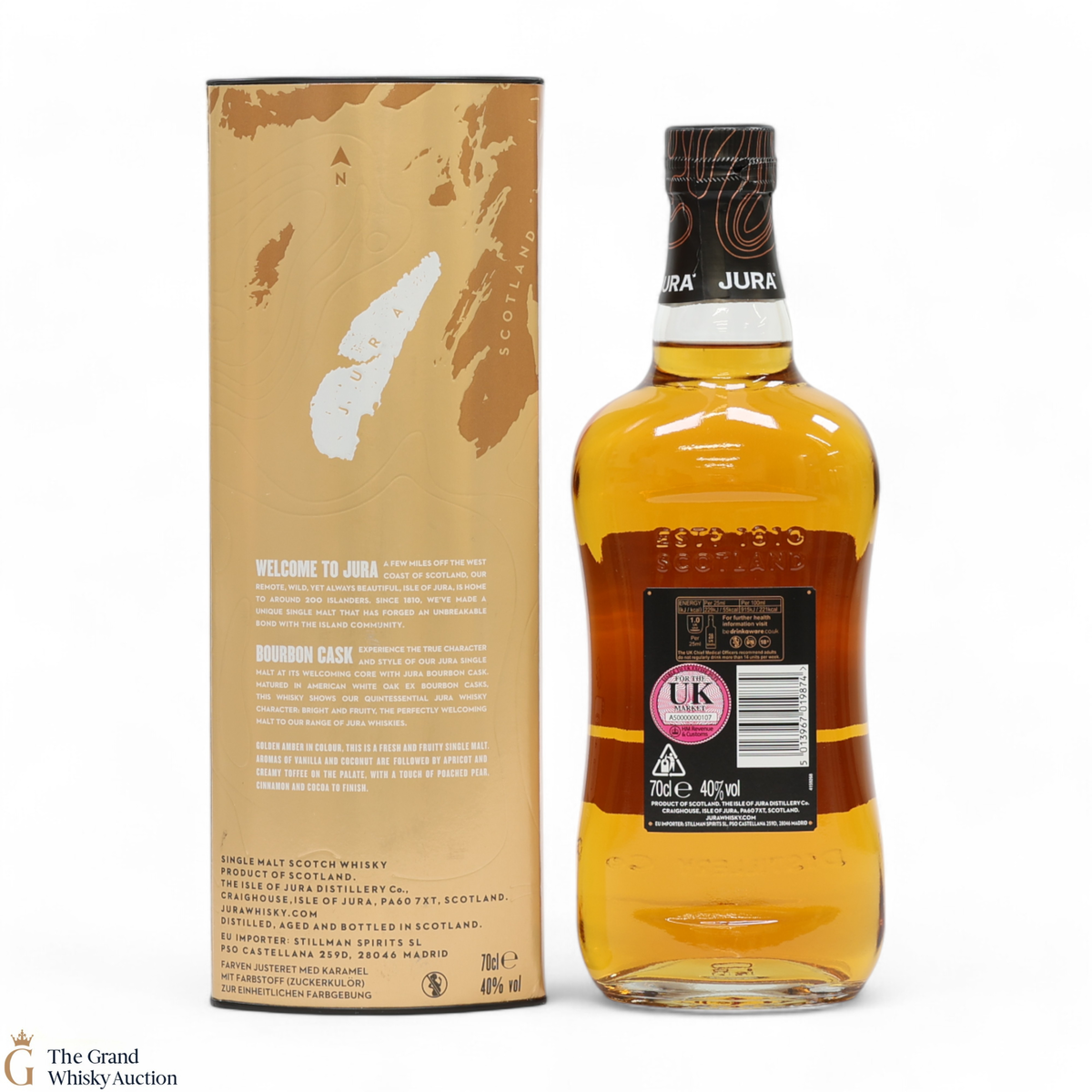 This single malt was matured in American white oak ex-bourbon casks. This whisky shows the quintessential Jura whisky character: bright and fruity, the perfectly welcoming malt to the Jura whiskies.