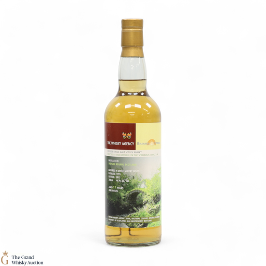 This Speyside single malt matured in refill sherry wood for 17 years before being bottled in 2012 for The Whisky Agency. This is one of only 409 bottles produced at 46% ABV.