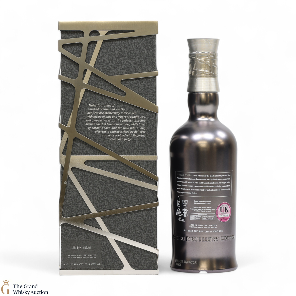 This guaranteed 25 Year old by Ardbeg has been produced from incredibly rare casks which were filled during some of the distillery's darkest day's. Known for its peated whiskies this is one of Ardbegs oldest aged whisky to join the core range. This expression proves that age cannot tame Ardbeg’s smoky power, but also that it can yield some of the most complex and majestic flavours ever from Ardbeg Distillery.