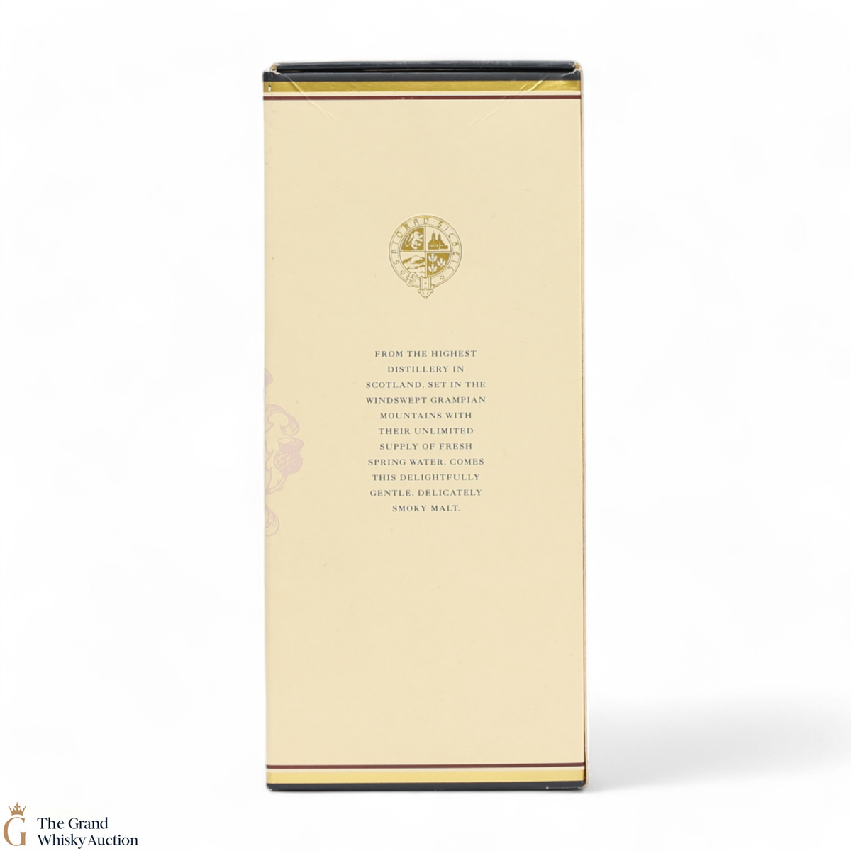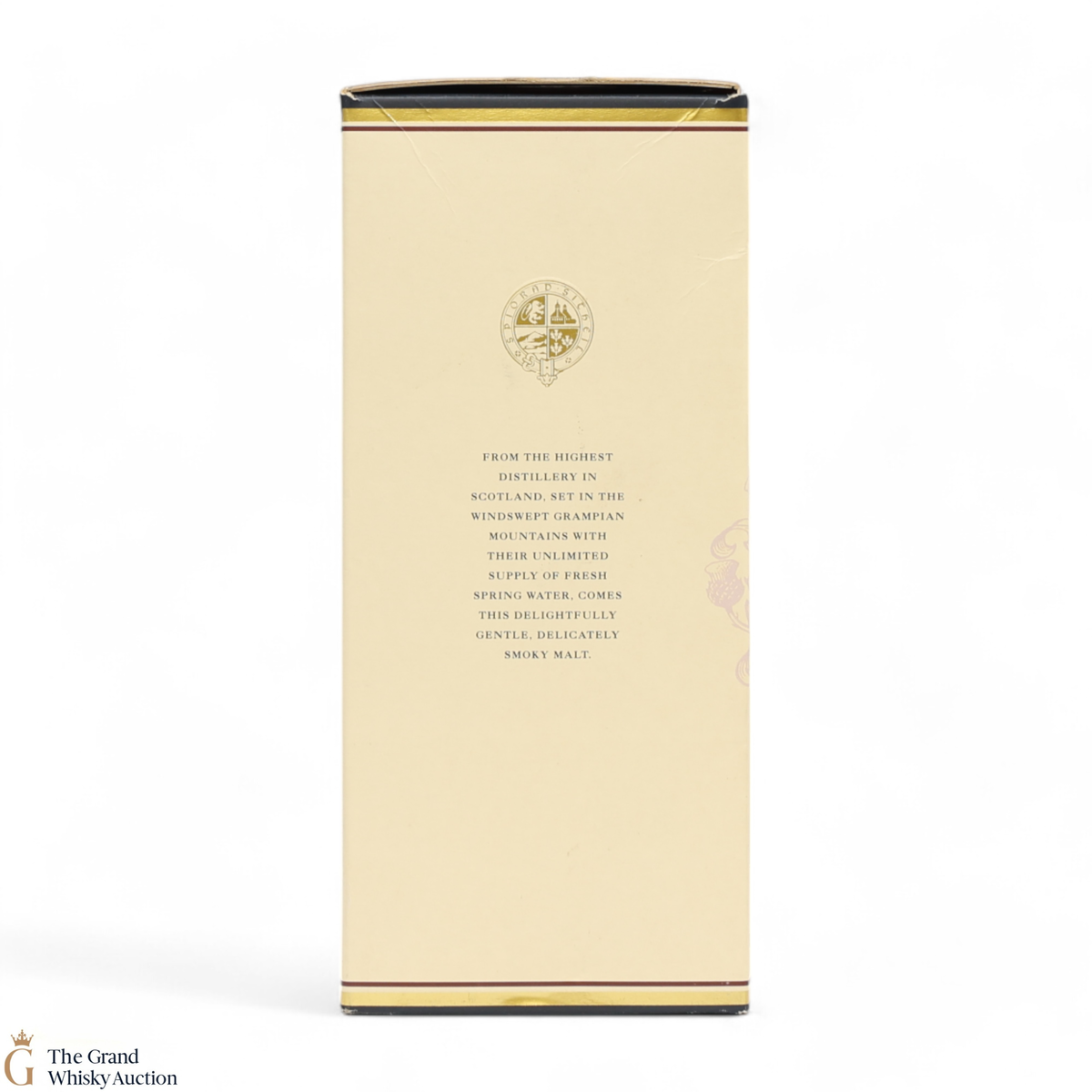 Due to the various ages of bottles and their seals, the condition of liquid is at the buyer's discretion and no claim can be lodged against failure/leakage in transit. Loss and breakage cover is available at 3% of the hammer price as standard. If the lot is not insured, no claim can be lodged against the courier or The Grand Whisky Auction for breakage or loss in transit.