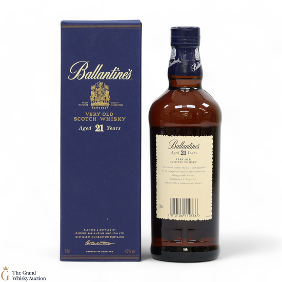 Distilled in Dumbarton Scotland. Ballantine's 21-year-old is a distinguished whisky characterised by its maturity and subtle layering of fruit, delicate floral hints, and aromatic spices.