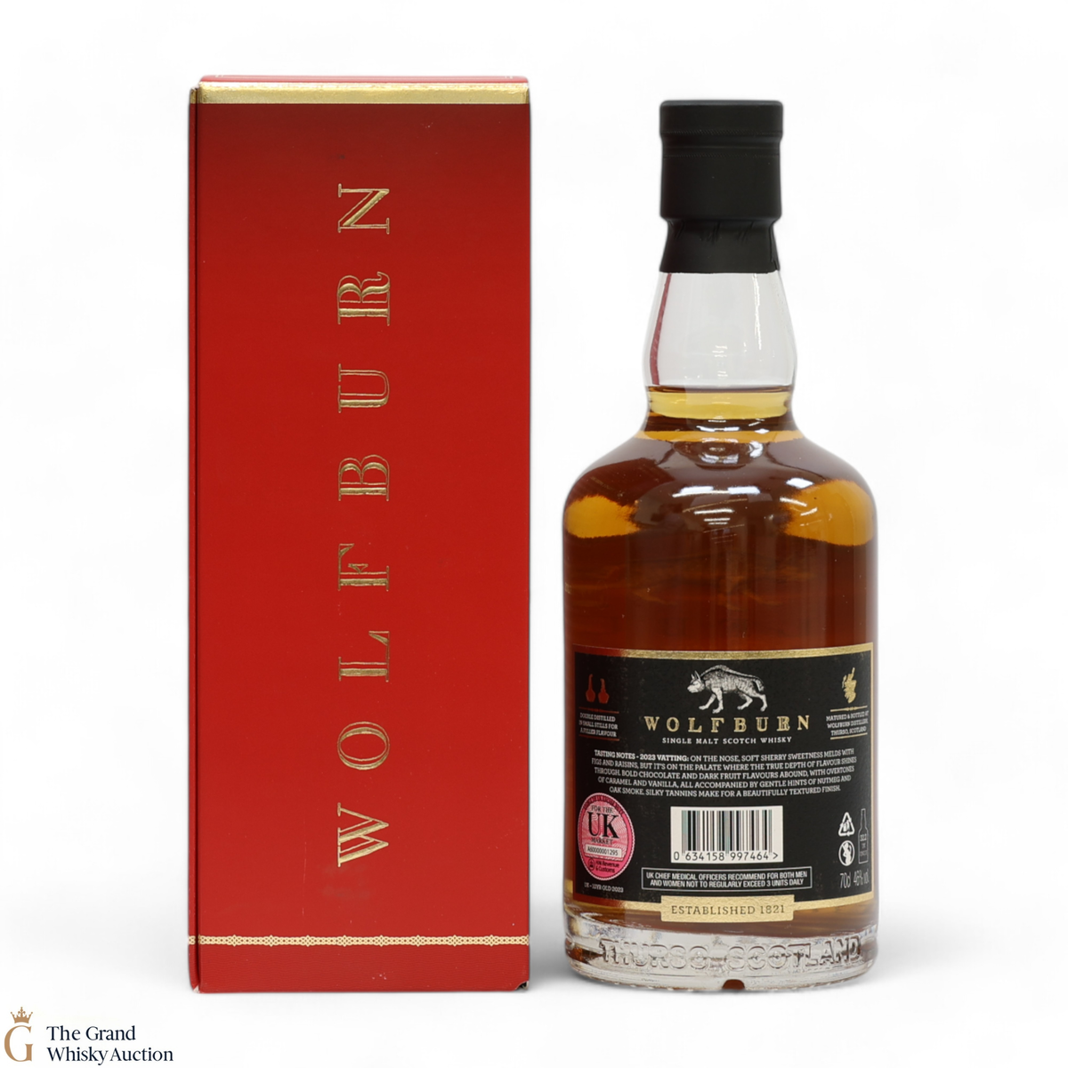 Due to the various ages of bottles and their seals, the condition of liquid is at the buyer's discretion and no claim can be lodged against failure/leakage in transit. Loss and breakage cover is available at 3% of the hammer price as standard. If the lot is not insured, no claim can be lodged against the courier or The Grand Whisky Auction for breakage or loss in transit.