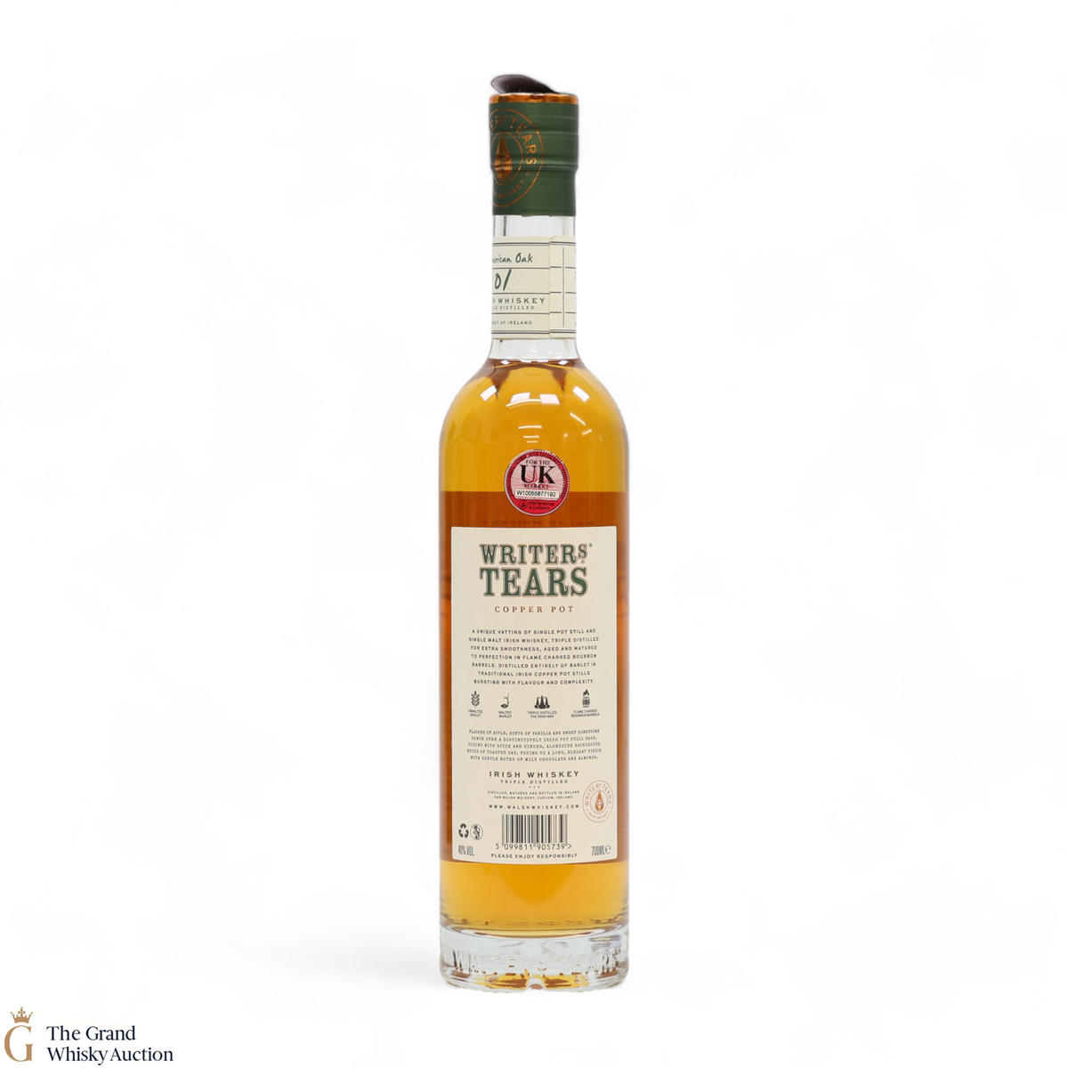 Writers Tears is a pot still whiskey and a salute to the great Irish poets and playwrights through the centuries. This smooth whiskey is triple-distilled in traditional Irish copper pot stills and casked in American Oak barrels.